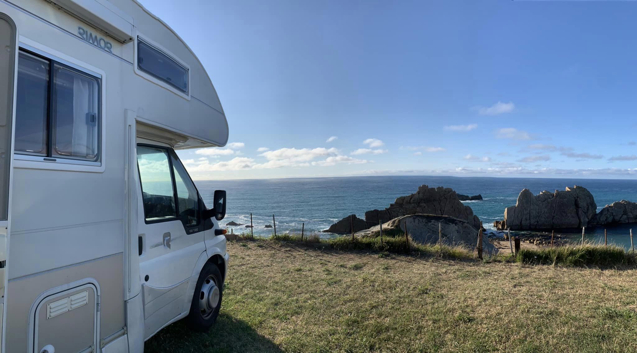 Anche oggi l’unico campeggio in zona è pieno, ma troviamo comunque un prato in cui lasciare il camper: data la meravigliosa vista sulla spiaggia non ci è andata poi così male! Pranziamo con una vista strepitosa e poi scendiamo un ripido sentiero che ci porta in spiaggia. Oggi vogliamo rosolarci un po’ al sole e fare “vita da mare”.