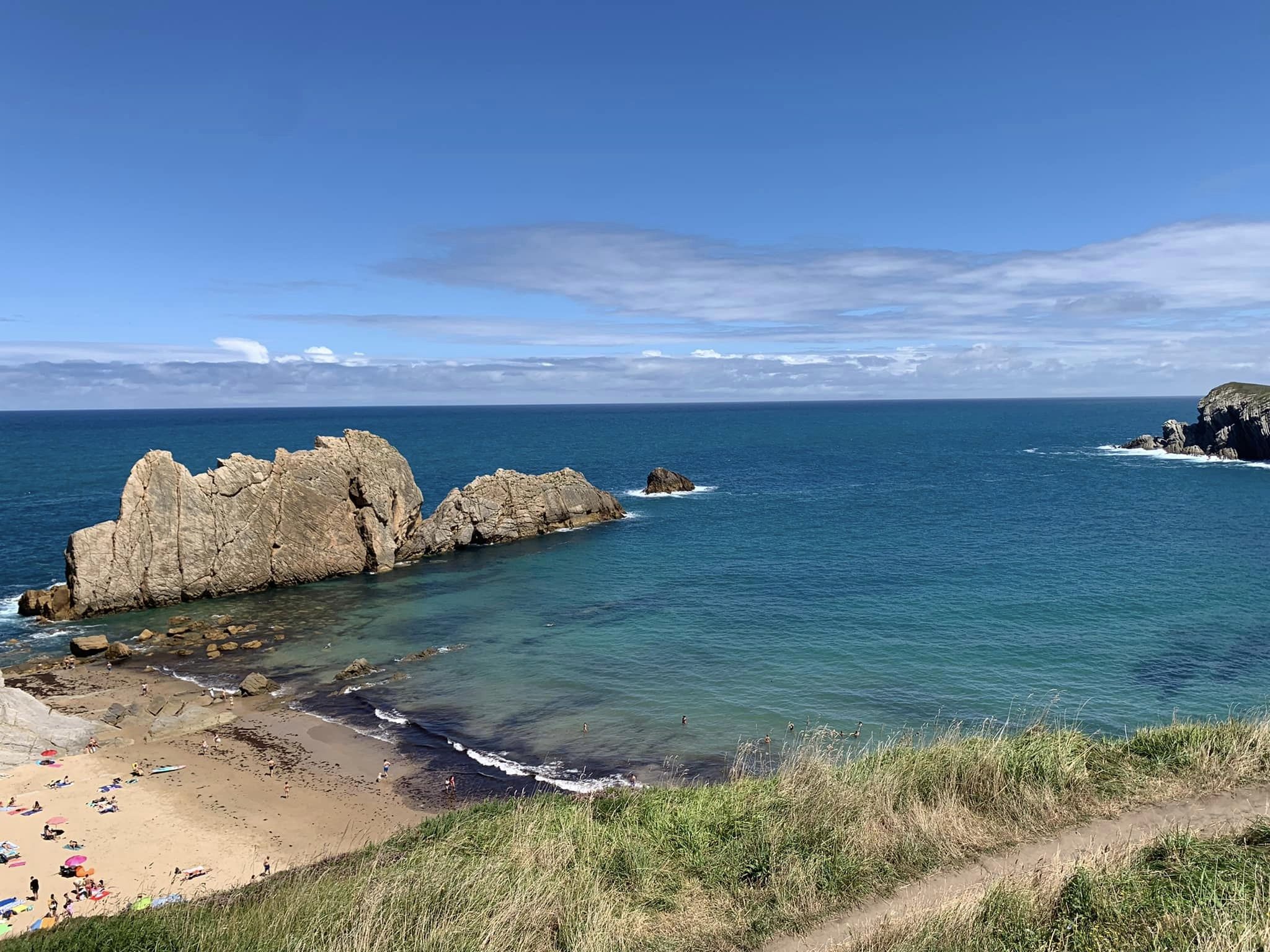 Per fortuna il sole non ci abbandona lungo tutto il tragitto e ci godiamo il verde brillante delle pinete e dei rilievi e il blu profondo dell’oceano durante tutta la A8, o cosiddetta “Autovia del Cantàbrico”. Siamo diretti a Playa dell’Arnia, meta che qualche giorno fa abbiamo saltato perché troppo affollata.