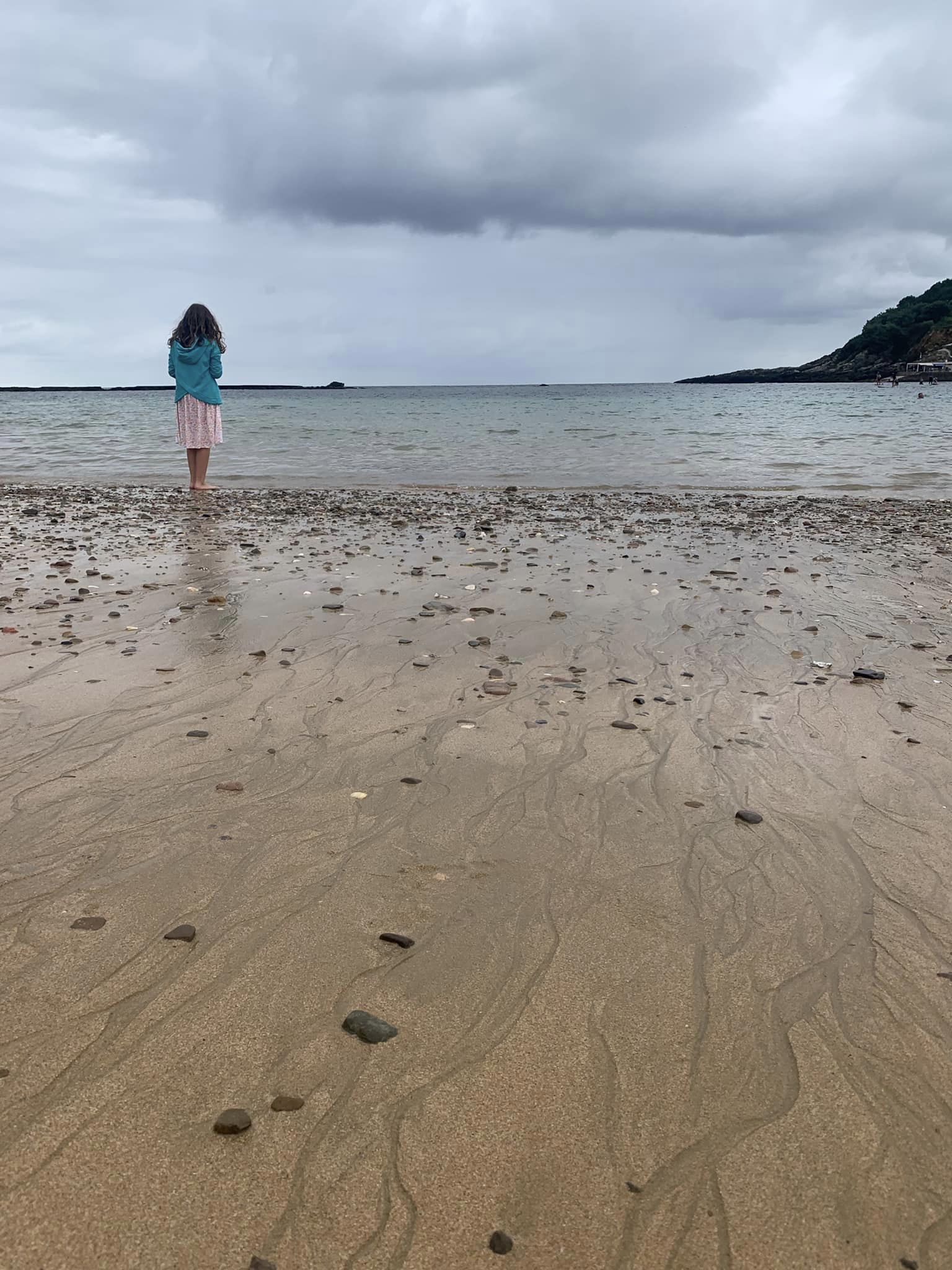 Nonostante la giornata nuvolosa ci dirigiamo in spiaggia, confidenti che il clima oceanico ci riserverà belle sorprese. La sabbia è finissima, la baia enorme, si trovano conchiglie di varie dimensioni, le onde discrete e l’acqua fresca. Si sta bene con il golfino. Dopo giorni di calura e viaggio, questo è ciò che di più si avvicina al Paradiso! Dopo una lunga passeggiata con i piedi a puccia nell’oceano torniamo in camper per un pranzetto frugale e poi ripartiamo alla volta di Mutriku.