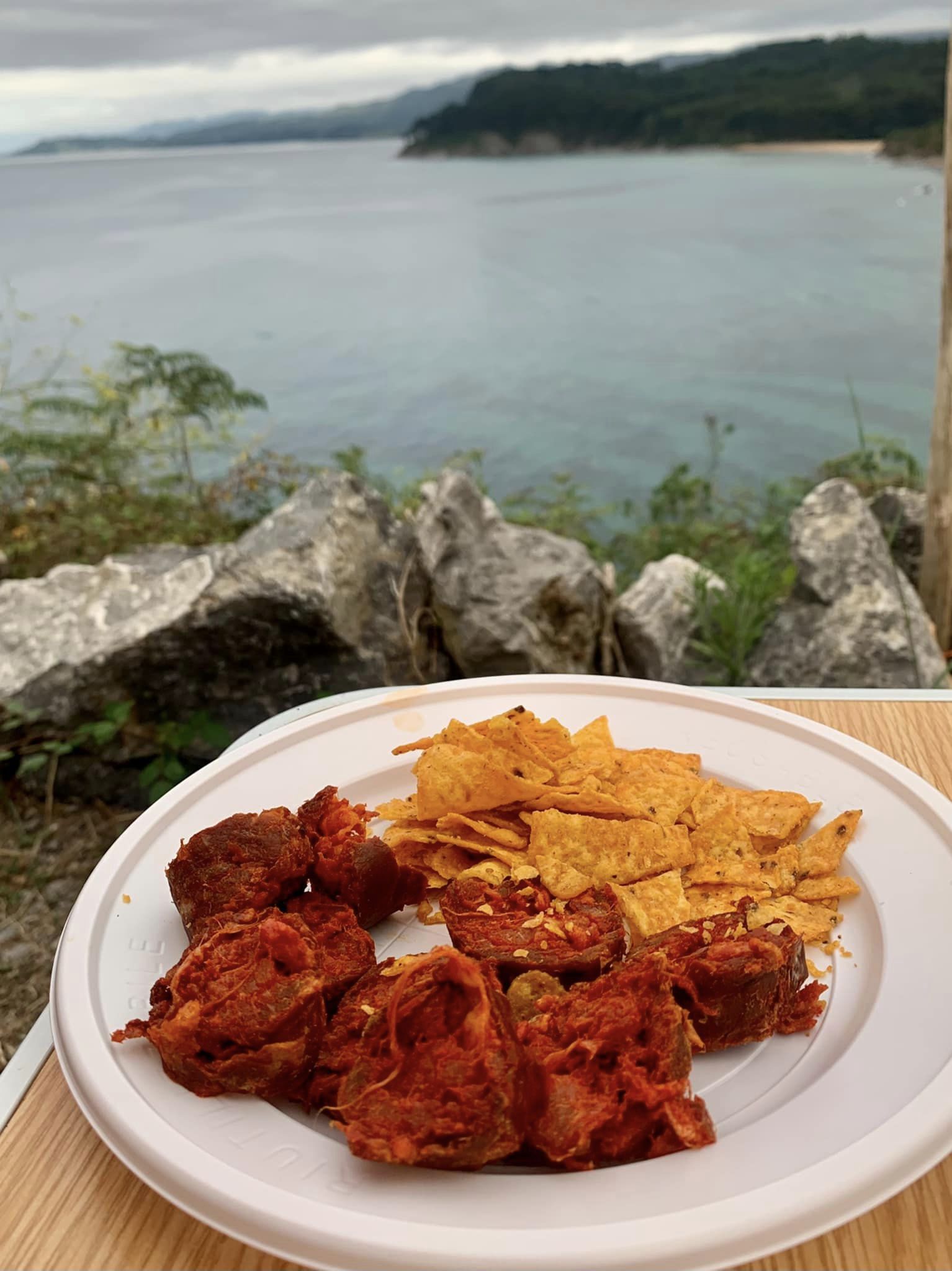 Stasera abbiamo deciso di dormire sull’oceano, quindi dopo un tentativo andato a vuoto ci dirigiamo verso il piccolo paesello di Llastres, che si rivela una vera chicca. Abbarbicato sulle alture, ha un grazioso porticciolo, per lo più di pescherecci, e spiagge in cui la foresta incontra il mare. Che bello poter ammirare il fondersi così incontaminato di mare e monti. La cena vista oceano è poi qualcosa di indimenticabile.