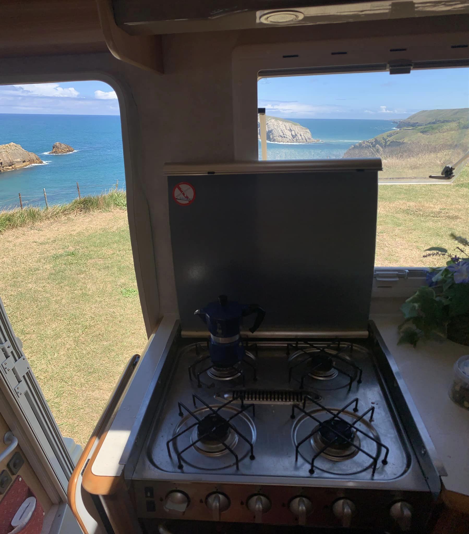 Anche oggi l’unico campeggio in zona è pieno, ma troviamo comunque un prato in cui lasciare il camper: data la meravigliosa vista sulla spiaggia non ci è andata poi così male! Pranziamo con una vista strepitosa e poi scendiamo un ripido sentiero che ci porta in spiaggia. Oggi vogliamo rosolarci un po’ al sole e fare “vita da mare”.