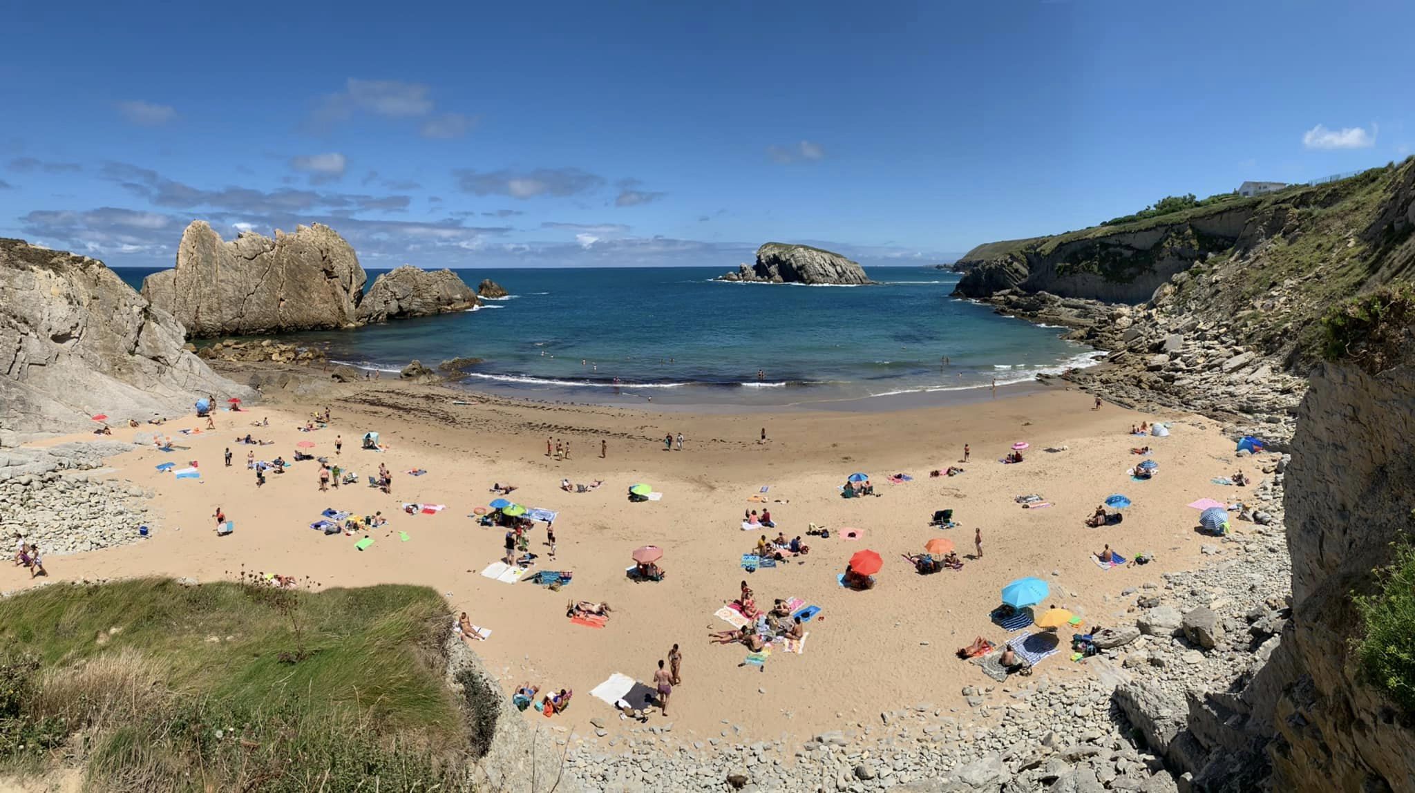 Per fortuna il sole non ci abbandona lungo tutto il tragitto e ci godiamo il verde brillante delle pinete e dei rilievi e il blu profondo dell’oceano durante tutta la A8, o cosiddetta “Autovia del Cantàbrico”. Siamo diretti a Playa dell’Arnia, meta che qualche giorno fa abbiamo saltato perché troppo affollata.
