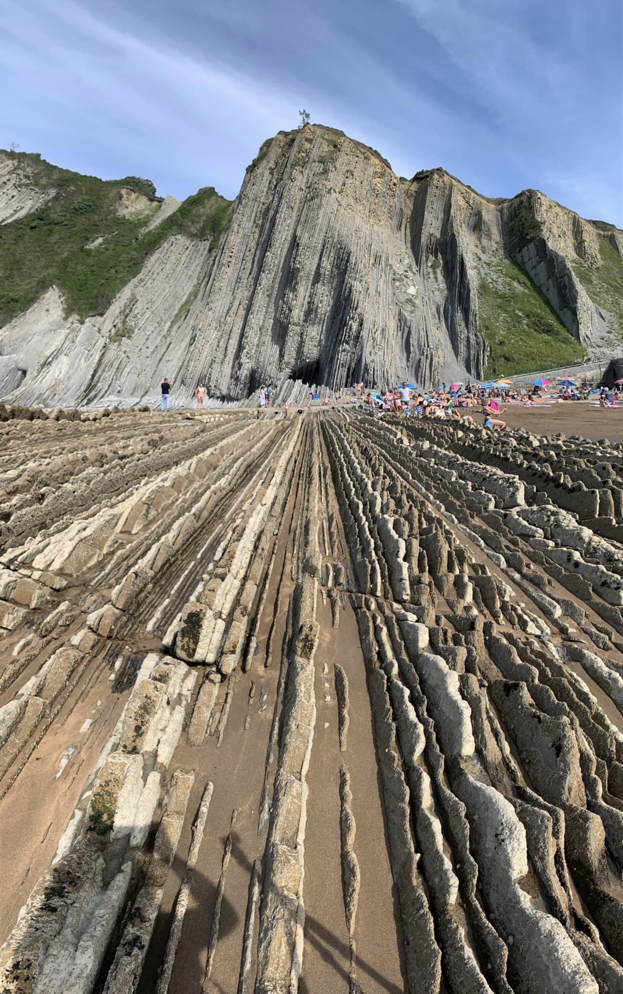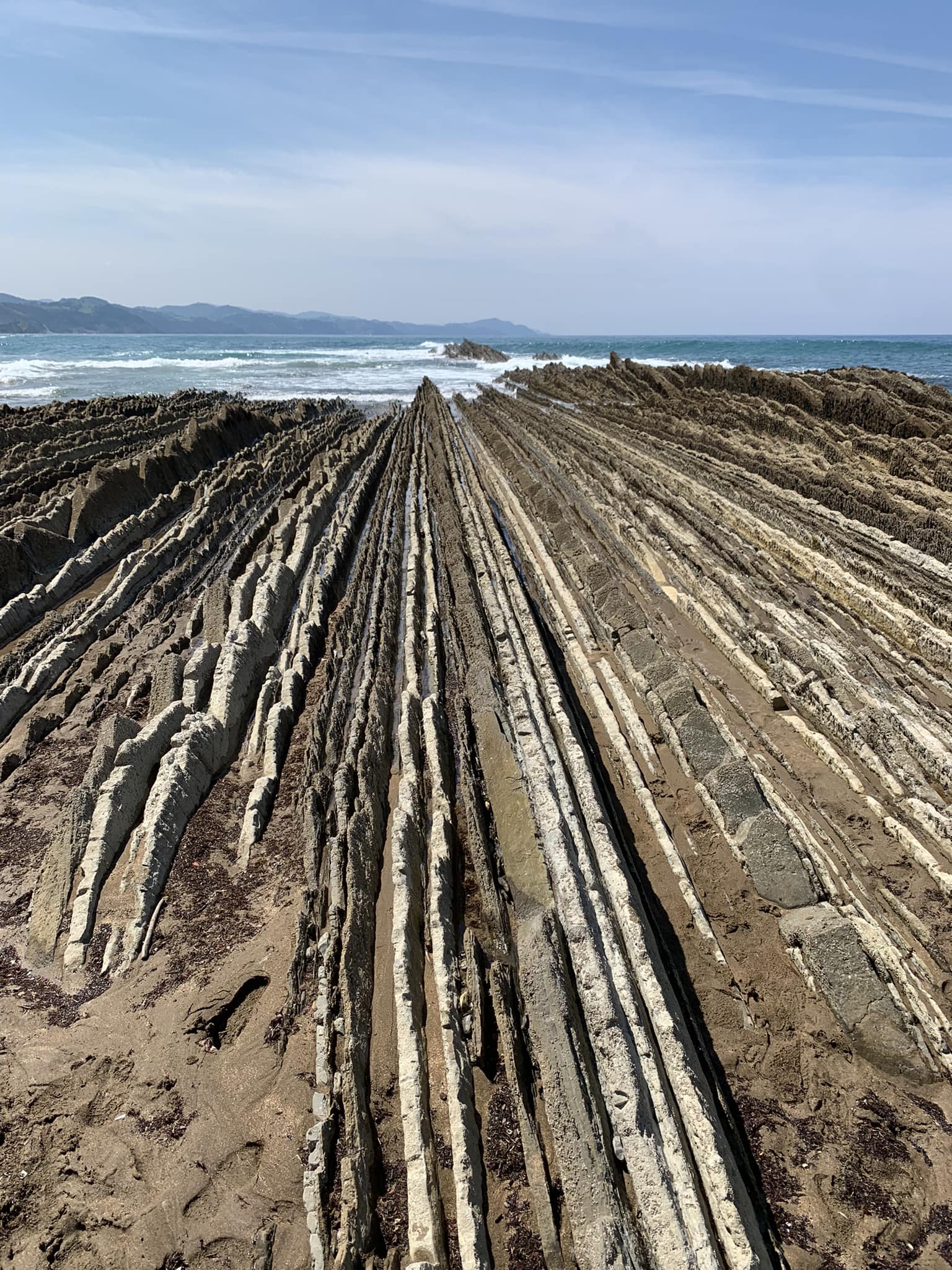 Oggi infatti siamo stati tutto il giorno in spiaggia a Zumaia, a divertirci con la tavola a cavalcare le onde, a saltare i cavalloni e a godere dello spettacolo naturale dei flysch. Le scogliere di questa zona tolgono il fiato, soprattutto sapendo che hanno più di 50 milioni di anni di storia geologica che l’azione del mare ha lasciato allo scoperto…un vero capriccio della natura!