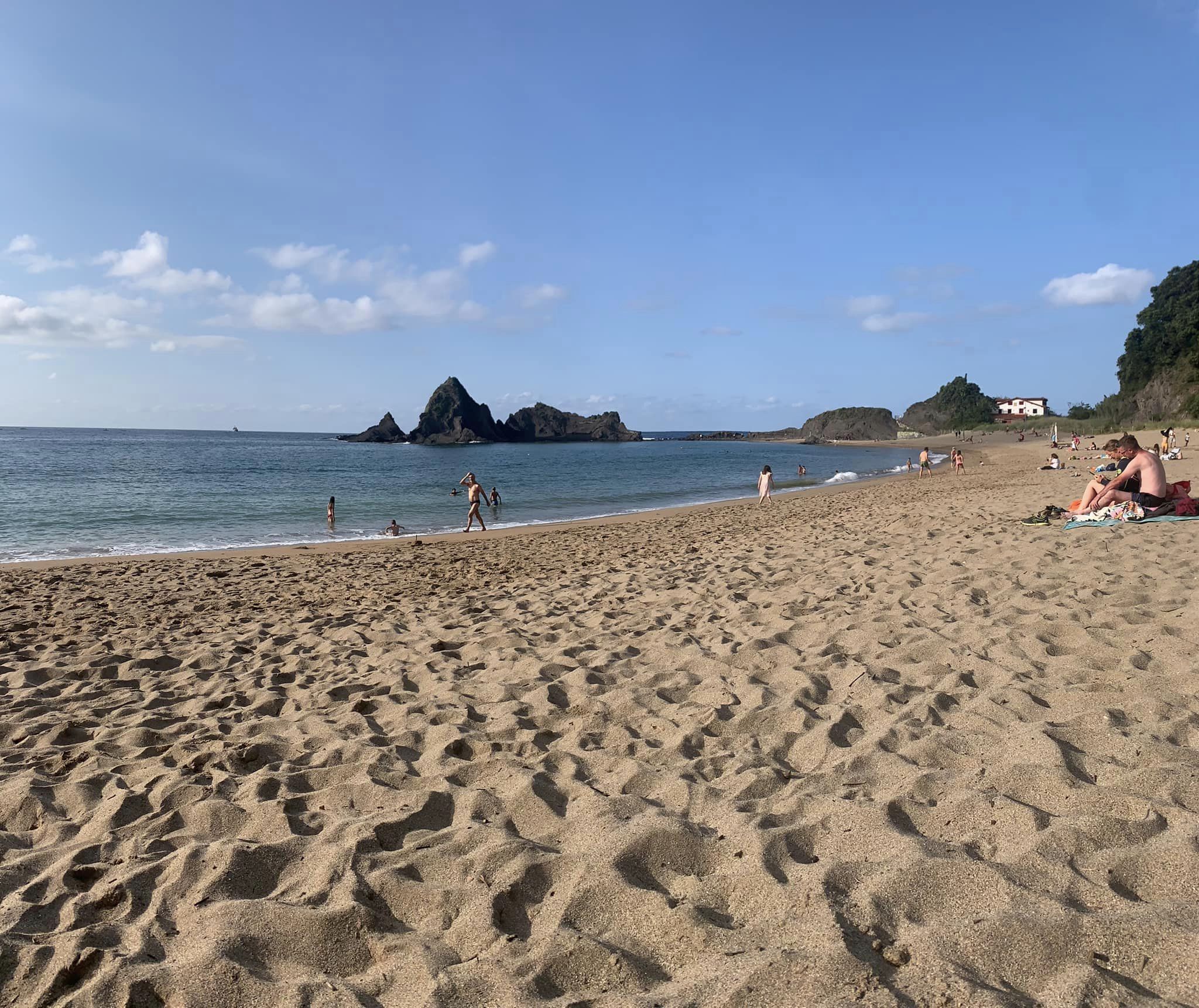 Nonostante la giornata nuvolosa ci dirigiamo in spiaggia, confidenti che il clima oceanico ci riserverà belle sorprese. La sabbia è finissima, la baia enorme, si trovano conchiglie di varie dimensioni, le onde discrete e l’acqua fresca. Si sta bene con il golfino. Dopo giorni di calura e viaggio, questo è ciò che di più si avvicina al Paradiso! Dopo una lunga passeggiata con i piedi a puccia nell’oceano torniamo in camper per un pranzetto frugale e poi ripartiamo alla volta di Mutriku.