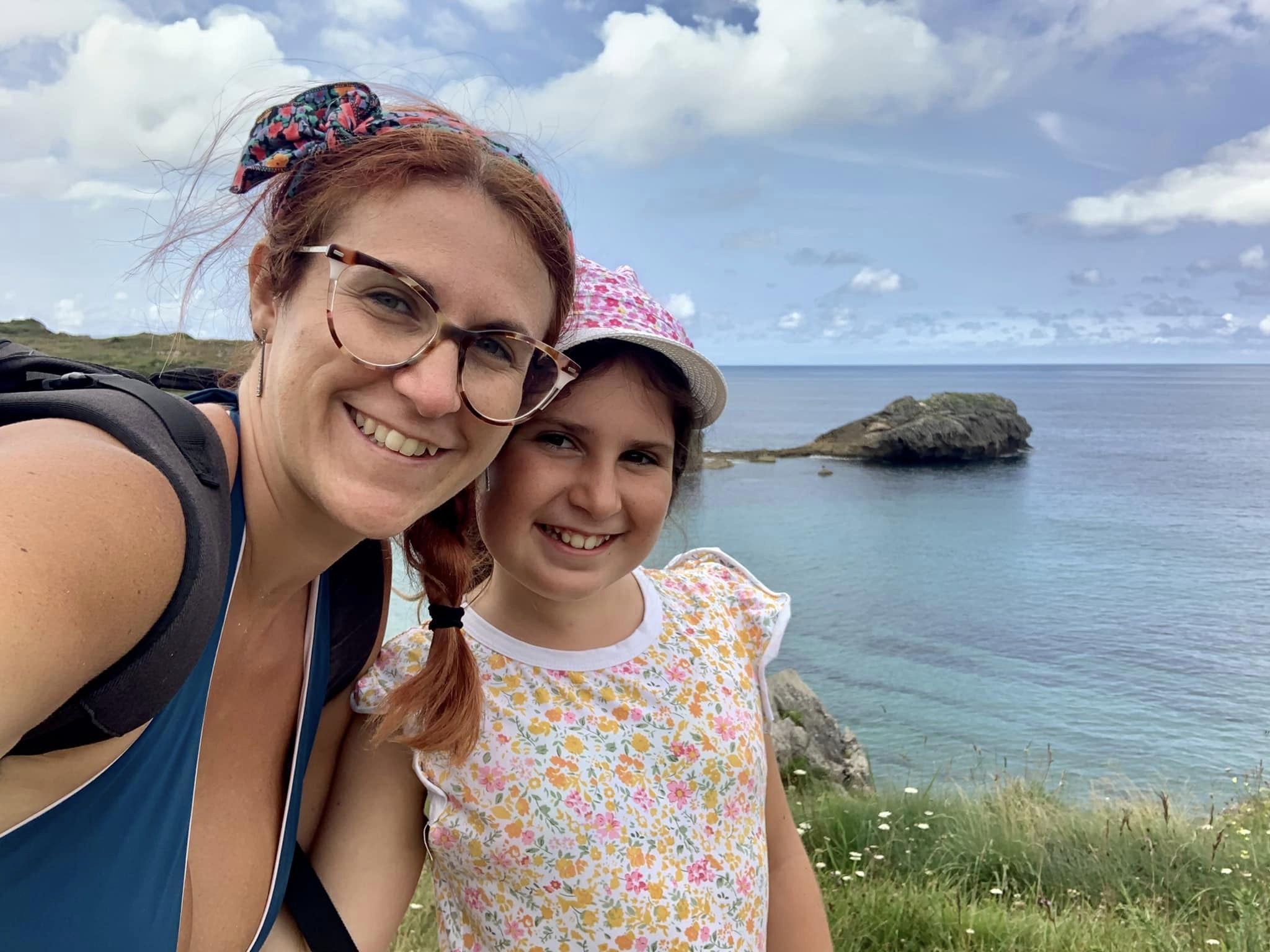 La prossima tappa sarà prevalentemente fotografica per mamma, quindi cavalletto e filtri alla mano ci dirigiamo verso El Castro de Las Gaviotas, nonostante la strada sterrata da percorrere con il nostro leggero 3.5tonnellate e le mezze imprecazioni di papà Fabio. Attraverso un sentiero di montagna tra mucche e rovi arriviamo alla scogliera: WOW! Una meraviglia della natura. L’acqua è così limpida e verde e azzurra e…wow!